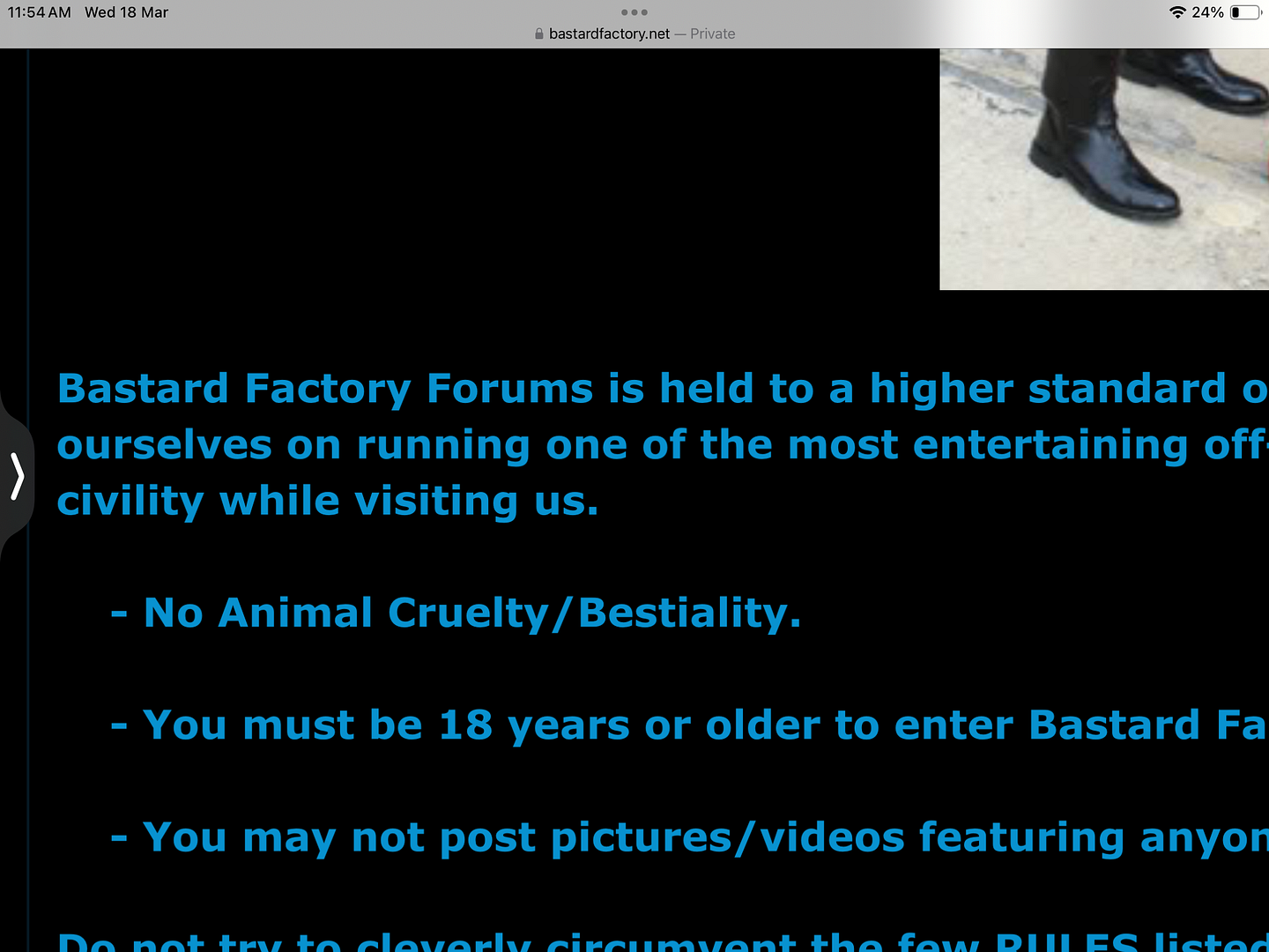 I'm stopping this troll right now. With the exception of the child sexual abuse rule because it's new, the rest speak for themselves. Follow them or don't, but I'm not going anywhere.